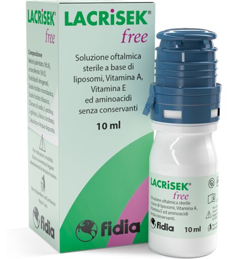 LACRISEK free - Descrizione Prodotto sterile a base di liposomi, vitamina A, vitamina E e aminoacidi senza conservanti. LACRISEK Free soluzione oftalmica stabilizza lo strato lipidico del film lacrimale, regola e corregge la lubrificazione della superficie oculare. Le vitamine A ed E, note per le l… ...