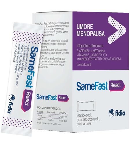 Fidia Farmaceutici Spa Samefast React - Integratore Energetico in Stick Pack, 20 Stick da 2,13g, Energia Naturale e Benessere Attivo