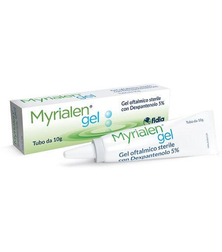 Myrialen gel - Descrizione Gel oftalmico sterile contenente dexpantenolo al 5%, utile a mantenere l'idratazione e la protezione dell'epitelio corneale. Il dexpantenolo è un derivato dell'acido pantotenico (vitamina B5) che appartiene al complesso delle vitamine del gruppo B, ed è un componente esse… ...