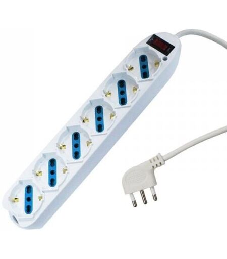 EXTRASTAR Multipresa Ciabatta Elettrica Cavo 1,5M Con 6 Posti Prese Universale 10/16A Schuko e Interruttore Spina 10A Laterale Bianco