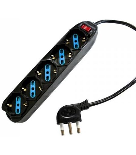 EXTRASTAR - Multipresa Ciabatta Elettrica Con 5 Posti Prese Schuko 10/16A Colore Nero Interruttore Spina 10A Laterale Cavo 1,5M Nero