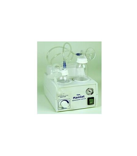 Mamilat TIRALATTE ELETTRICO Indicazioni: pompa a depressione, ad alimentazione elettrica 230V~, da utilizzarsi per il prelievo di latte materno dal seno. Particolarmente adatto per l'impiego ospedaliero in reparti di maternità per l'impiego a domicilio. Modalità d'uso: l'apparecchio deve essere fatto riposare 40 minuti ogni 20 minuti di funzionamento. Caratteristiche: costruito con corpo in materiale plastico ad elevato isolamento termico ed elettrico. Fornito con 1 boccetto da 150cc e un boccetto da 250cc in policarbonato provvisti di tettarelle e coppetta tiralatte. Dotato di regolatore di aspirazione e vuotometro posti sul pannello frontale. L'apparecchio é costituito da sistema di sicurezza caratterizzato da filtro antibatterico il quale é monouso e deve essere sostituito ad ogni applicazione. Il filtro antibatterico ha la funzione di bloccare l'aspirazione di liquido dopo che viene raggiunto il massimo livello nei due boccetti biberon. Cod. DC620010 ...