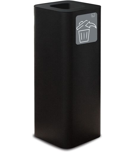 Elegante e robusto cestino per rifiuti in acciaio zincato e verniciato a polvere. Ideale per aree esterne coperte, ingressi, uffici, hotel, centri commerciali, strutture pubbliche. Con pratico supporto interno per sacchi (anello di fissaggio), il sacco può essere svuotato dall'alto. Diversi contenitori possono essere combinati singolarmente per formare un sistema di raccolta differenziata per una separazione dei rifiuti rispettosa dell'ambiente. Include un pittogramma in alluminio composito con i simboli del "bidone dei rifiuti". Volume 60 litri. ...