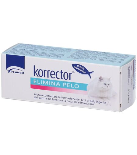 Korrector Elimina Pelo Gatto Korrector Elimina Pelo è indicato per contrastare la formazione dei boli di pelo e per favorirne l’eliminazione. Contiene Olio di pesce che apporta acidi grassi Omega 3 (5 cm = min. 12,75 mg - 8 cm = min. 20,4 mg), quali nutrienti essenziali al mantenimento di un buono stato di salute. Modo d'uso: Korrector Elimina Pelo può essere somministrato direttamente nella bocca del gatto, o nella ciotola mescolato alla pappa. Se spalmato sulla zampina, il gatto provvederà ad assumerlo spontaneamente durante lo svolgimento delle quotidiane attività di pulizia del proprio mantello. Quantità consigliate: Per contrastare la formazione di boli di pelo: somministrare 5 cm di Korrector Elimina Pelo una volta al giorno almeno due volte alla settimana. In gatti a pelo lungo somministrare fino a 8 cm. Durante la muta o quando la perdita di pelo è più intensa: somministrare le quantità sopra riportate una volta al giorno per 7/10 giorni. Successivamente, al medesimo dosaggio una volta al giorno almeno due volte alla settimana con regolarità. Ingredienti: Estratto di malto, Maltodestrina, Olio vegetale di semi di Girasole raffinato, Pirofosfato di sodio, Lieviti inattivati, Farina di lupini dolci, Cloruro di sodio, Olio di pesce (2,5%), Prodotti e coproprodotti della trasformazione della frutta fresca (Ananas), Acidi grassi grezzi da frazionamento di grassi vegetali (Palma), Fosfato dicalcico. Additivi Nutrizionali/kg: Antiossidanti. Conservanti. Componenti analitici: Proteina grezza: 3,31%, Fibra grezza: 0,28%, Grassi grezzi: 24,53%, Ceneri grezze: 5,93%, Umidità: 20,98%. ...