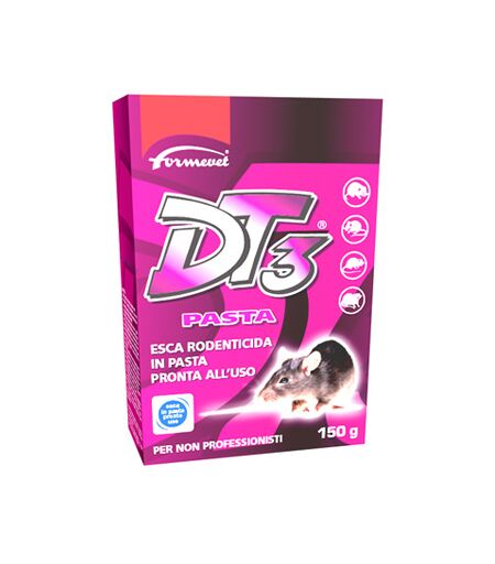 DT3 - PASTA - Descrizione Esca rodenticida pronta all'uso a base di una sostanza attiva anticoagulante, nota come difetialone, efficace contro yopolino domestico (mus musculus), ratto grigio (rattus norvegicus) e ratto nero (rattus rattus) anche dopo una singola ingestione. DT3 PASTA contiene una s… ...