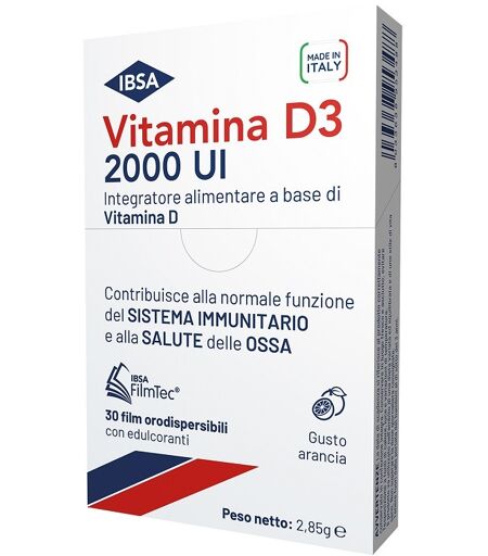 Ibsa Vitamina D3 2000UI Integratore che contribuisce alla normale funzione del sistema immunitario e alla salute delle ossa 30 FILM orodispersibili con edulcolanti. ...