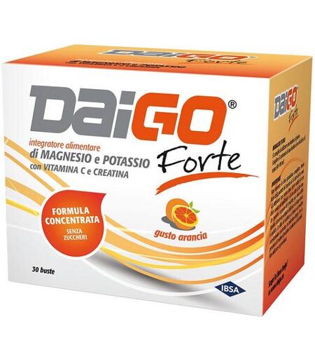 Daigo Forte è un integratore di Magnesio e Potassio ideale per recuperare molto più velocemente le proprie energie e riequilibrare il livello di Magnesio e Potassio presente nel nostro organismo.Durante i periodi più caldi il nostro corpo consuma molta più energia del dovuto a causa del caldo, afa, ecc. Per questo motivo abbiamo bisogno di più energia per poter proseguire la nostra giornata senza sforzi. Assumendo l'integratore Daigo Forte sarà possibile recuperare molto più velocemente le nostre energie grazie al forte concentrato di Magnesio e Potassio. Daigo Forte è indicato in situazioni di aumento del fabbisogno energetico oppure in caso di stati di carenza fisica e mentale che possono essere causati da stress, attività fisica, ecc. L'integratore Daigo Forte ha una forte concentrazione di Potassio, Magnesio, Creatina e Vitamina C. Grazie alla presenza di tali ingredienti sarà possibile recuperare molto più velocemente le proprie forze fisiche e mentali affrontando con molta più energia gli impegni quotidiani.Magnesio e Vitamina C: Contribuiscono all'equilibrio e alla riduzione di stanchezza e fatica;Potassio: Favorisce il mantenimento di una normale pressione sanguigna. Assumere 1 bustina al giorno di Diago Forte sciogliendo il contenuto di uno stick in un bicchiere di acqua. Non superare la dose giornaliera consigliata. Gli integratori non vanno intesi come sostituto di una dieta variata ed equilibrata ed uno stile di vita sano. Tenere fuori dalla portata dei bambini al di sotto dei 3 anni.Non assumere in caso di ipersensibilità o di allergie verso uno o più componenti.Non utilizzare in gravidanza e nei bambini, o comunque per periodi prolungati senza sentire il parere del medico. Magnesio, Potassi, Creatina, Vitamina C ...