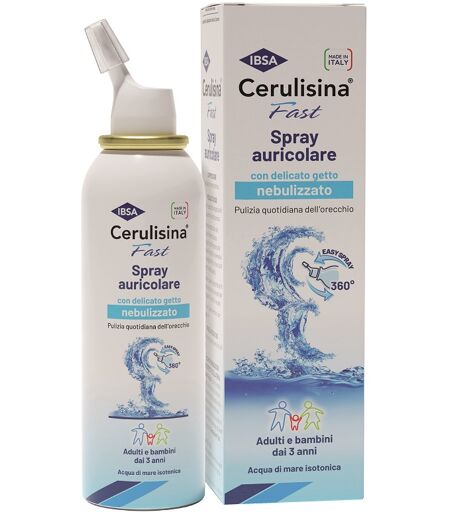 Cerulisina Fast - SPRAY AURICOLARE - Descrizione Dispositivo medico CE 0546. Soluzione isotonica di acqua di mare per la detersione dell'orecchio. Indicato per soggetti con eccessiva produzione ceruminosa chi pratica sport acquatici e portatori di apparecchi acustici. Rimuove meccanicamente l'ecce… ...