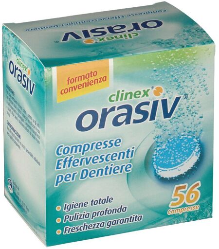 Clinex Orasiv 56 Compresse Effervescenti per Protesi Dentali - DESCRIZIONE PRODOTTO: - Le compresse effervescenti Clinex Orasiv sono state appositamente studiate per garantire la pulizia profonda e l'igiene sicura delle protesi dentali. Questo prodotto offre un'azione antibatterica efficace che aiu… ...