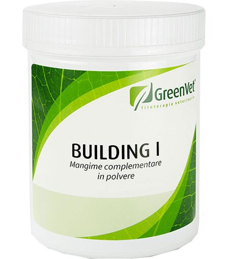 BUILDING I - Descrizione Mangime complementare in polvere. Modalità d'uso 400 mg ogni 5 - 10 kg di peso Formato Barattolo da 500 g Cod. BF089 ...