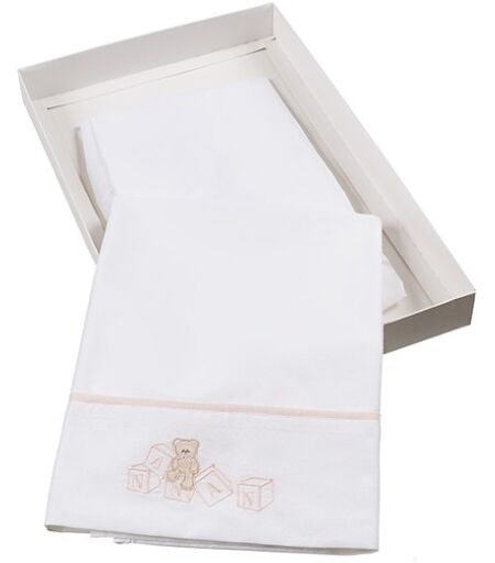 Il set lenzuola per lettino della linea "Dadini" di Nanan e realizzato in 100% cotone. È composto da: federa per cuscino, lenzuolino e coprimaterasso. Il lenzuolino e impreziosito dal dolce orsetto con la scritta del brand a forma di dadini. ...