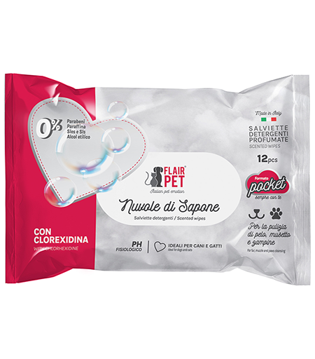 Flair Pet Salviette Detergenti Nuvole di Sapone Pocket con Clorexidina 12pz