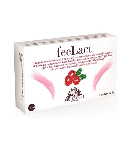 feeLact - Integratore alimentare di Vitamina C che contribuisce alla normale funzione del sistema immunitario, Lactobacillus Rhamnosus per favorire l'equilibrio della flora batterica intestinale e con l'estratto di Cranberry che sostiene la funzionalità delle vie urinarie. Avvertenze Non superare l… ...