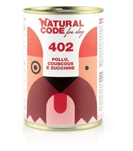 Natural Code 402 Pollo, Cousous e Zucchini 400g umido cane 400g