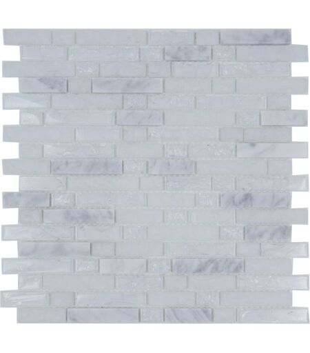 Mosaico Snow Craquele, cm 30x30, in vetro , bianco mix, posato su rete, idale per rivestire gli spazi bagno e cucina ...