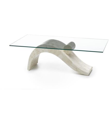 Tavolino (120 x 70 x 40 - Trasparente) Materiale Top: Vetro temperato filo lucido Gambe / Base: Pietra fossile white agata Struttura Gambe: Compensato marino Colore Vetro: trasparente gambe / base: beige. ...