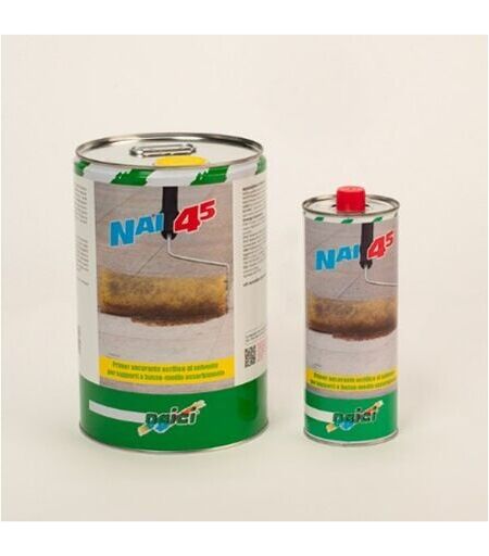 Primer guaine liquide impermeabilizzante Protezione e resistenza: il primer liquido nai 45. nai 45 è un liquido dalla fluidità simile a quella dei solventi che, applicato tal quale su una qualsiasi superficie edile asciutta, costituisce un fondo ideale per successive verniciature o impermeabilizzazioni in base acqua o solvente. È un ottimo riconsolidante. Caratteristiche Tecniche Nai 45 è un liquido dalla fluidità simile a quella dei solventi,primer da aggancio per le guaine liquide naici: - Consumo medio: 150 - 250 gr/m² su cemento - Fuori polvere: 10’-15’ a 25°C - Limiti di temperatura d'uso: +0°c +35°c ...
