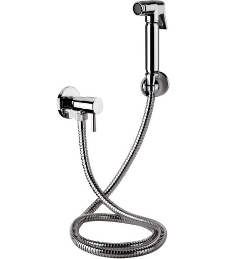 REMER Set doccetta per bidet relax con doccia a pulsante, flessibile, rubinetto e supporto lux tutto cromo