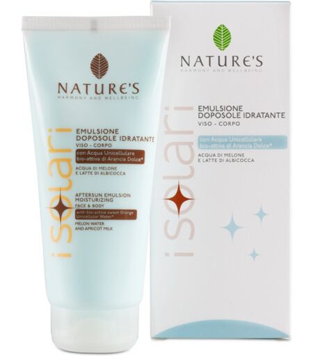 NATURE'S i solari - EMULSIONE DOPOSOLE IDRATANTE - Descrizione Emulsione fresca e nutriente, ideale dopo una giornata di sole, vento e mare. Apporta una immediata sensazione di benessere, esaltando lo splendore e la luminosità dell'abbronzatura. Contiene acqua unicellulare bio - attiva di arancia d… ...