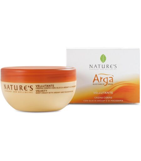 NATURE'S Argà - VELLUTANTE Crema corpo che ristabilisce il naturale livello d'idratazione della cute, la nutre e l'aiuta a contrastare il precoce invecchiamento e la perdita di compattezza ed elasticità. L'idrolato di rosa damascena tonifica e attenua gli eventuali arrossamenti. La pelle ritrova co… ...