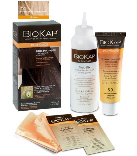 Biokap Nutricolor Tinta 10.0 Biondo extra chiarissimo - Descrizione Biokap Nutricolor Tinta per la colorazione e la bellezza dei capelli. La formula a base di ingredienti vegetali e ad alta tollerabilità cutanea nutre e ripara i capelli mentre li colora e copre i capelli bianchi. Con Complesso Tric… ...