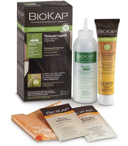 Biokap Nutricolor Tinta Delicato Rapid 5.0 Castano chiaro - Descrizione A base di ingredienti vegetali e ad alta tollerabilità cutanea nutre e ripara i capelli mentre li colora e copre i capelli bianchi. Complesso Tricorepair a base di proteine del Riso ad azione ristrutturante derivato del Salic… ...