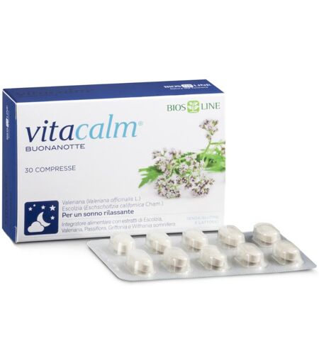 BIOS LINE SpA vitacalm - tutta notte - Bios Line - 30 compresse - Integratore alimentare che favorisce il rilassamento e il sonno
