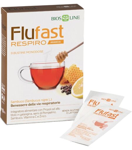 Bios Line Spa Flufast Apix Respiro Arancia 9 Buste - Integratore Propoli e Pompelmo per il Benessere Respiratorio