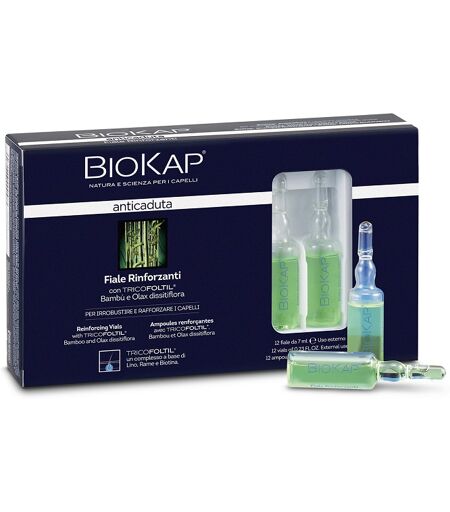 BIOKAP anticaduta Fiale Rinforzanti - Descrizione Formulate per intervenire sui fattori di squilibrio del ciclo di vita del capello, aiutano a contrastare l'eccessiva caduta e i problemi di diradamento e fragilità capillare, sia nell'uomo che nella donna. La loro azione è potenziata dall'estratto d… ...