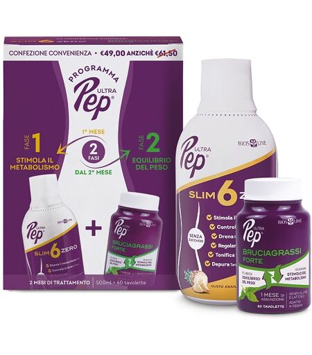 ULTRAPep SLIM 6 ZERO - Descrizione ULTRA PEP SLIM 6 ZERO: integratore alimentare con estratti di tè verde, cola,betulla, pilosella, griffonia, ortosifon, tarassacco e tamarindo. Il tè verde è indicato per l’equilibrio del peso corporeo, la colastimola il metabolismo mentre la pilosella, in sinergia… ...