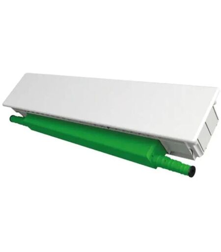 Cassetta per la raccolta condensa dell'apparecchio di condizionamento. installazione ad incasso nel muro. doppio attacco per il tubo di scarico. colore bianco e verde. in materiale ps+pe. lunghezza 42cm. ...