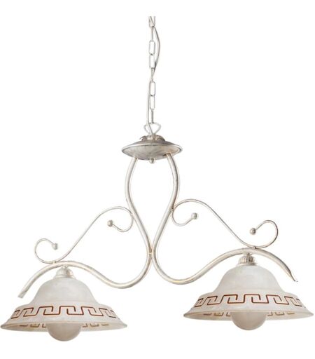 Dimensioni: larghezza 80 cm - altezza 100 cm Tipo di attacco: 2 x E27 (lampadine non incluse) Si adatta perfettamente ad un tipo di arredo classico e tradizionale Struttura in metallo color avorio spennellato oro, paralumi a campana in vetro effetto marmorizzato sfumato ambra e decorazione stile greco Prodotto lavorato a mano in Italia Il lampadario biliardo Giorgio si adatta perfettamente ad un tipo di arredo classico e tradizionale. La struttura in ferro battuto color avorio spennellato oro contribuisce a donare luminosità all'ambiente. I paralumi di forma a campana sono in vetro color avorio sfumato ambra effetto marmo, con una decorazione stile greco lungo il bordo. Dimensioni: larghezza 80 - altezza 100. Attacco: 2 x E27 ...