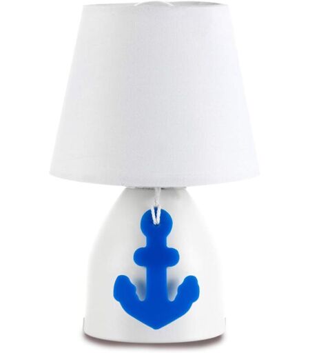 ONLI Lampada da Tavolo Base Metallo con Decorazione Ancora in plastica e Paralume in Tessuto 6 w, Bianco -