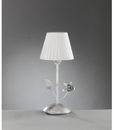 ONLI Lampada da tavolo Rose in metallo color bianco e argentato e decorazione con rose. Paralume in tessuto bianco plissettato. 1 x E14. Ideale come