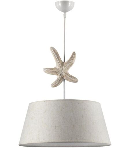 Lampada a sospensione "Stellina" in metallo, stoffa e legno.L'originale decorazione a forma di stella marina è in legno intagliato a mano.La struttura è in metallo bianco mentre il paralume è in stoffa color sabbia.Un lampadario estremamente originale e di grande effetto, perfetto per un ambiente dai colori tenui o anche per un locale sul mare.La lampada può essere regolata in altezza, da 50 fino a 100 cm.Misure lampadario, ⌀45xh100 cmAttacco lampadina, non inclusa, E27 Caratteristiche del prodotto Alimentazione Elettrico Attacco lampadina E27 Materiale sostegno Metallo Materiale paralume Stoffa Grado protezione IP20 Lampadina Non inclusa Potenza Max (W) 22 Colore Sabbia Materiale Metallo Marca Onli Numero di luci 1 Dimmerabile No Prodotto Made in Italy Dimiensioni prodotto Larghezza: 0.45 m. Altezza: 1.0 m. Profondit: 45.0 cm. Peso: 1.4 Kg. Dimensioni Imballo Larghezza: 0.0 cm. ...