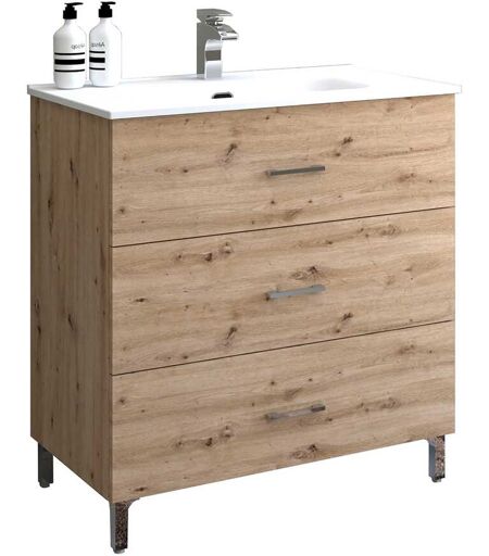 Tecnomat BASE PORTALAVABO CON LAVABO ASYA ROVERE CON PIEDINI 3 CASSETTI SOFT CLOSE 80x85x46 cm (LxHxP)