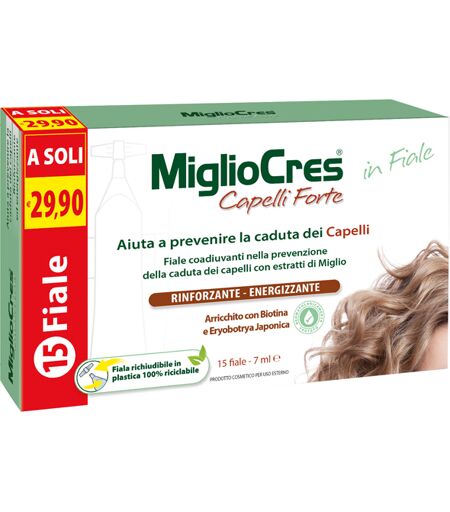 MiglioCres Capelli Forte - 15 Fiale Anticaduta con Biotina e Cheratina { "@context": "https://schema.org" "@type": "Product" "name": "MiglioCres Capelli Forte - 15 Fiale Anticaduta" "description": "Trattamento dermocosmetico anticaduta con estratto di miglio biotina e cheratina per rinforzare i… ...