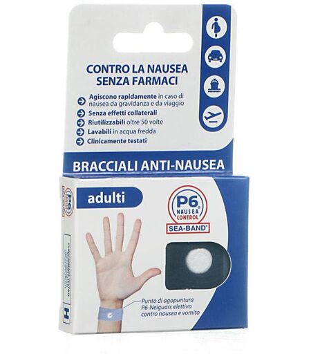 P6 Nausea Control Sea - Band - BRACCIALE Indicazioni Metodo di controllo assolutamente naturale di tutte le più diffuse forme di nausea come quelle da viaggio (mal d'auto mal di mare mal di treno mal d'aereo) da cervicale da gravidanza la nausea post - operatoria o da trattamenti chemioterap… ...