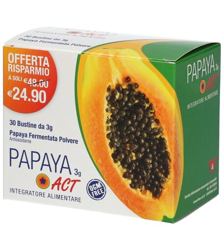 Papaya Act è un integratore alimentare a base di papaya fermentata e vitamine del gruppo B, in particolare vitamina B2 e vitamina B12, formulato per supportare l'organismo nei momenti di maggiore bisogno. - È particolarmente indicato per contrastare lo stress ossidativo, sostenere le difese immunit… ...