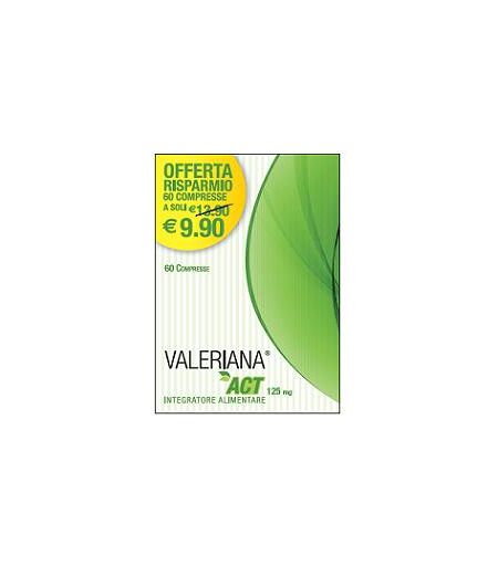 VALERIANA ACT 125 mg Integratore alimentare a base di estratto secco di Valeriana, favorisce il benessere mentale e il rilassamento in caso di stress. Ingredienti per 1 compressa Valeriana (Valeriana officinalis L., radice; maltodestrine) estratto secco titolato allo 0,42% in acido valerenico 125 mg 0,525 mg Altri ingredienti: agente di carica: sorbitolo; stabilizzante: carbossimetilcellulosa reticolata sodica; agenti di rivestimento: idrossipropilmetilcellulosa, cellulosa microcristallina, esteri acetici dei mono- e digliceridi degli acidi grassi; antiagglomeranti: magnesio stearato, biossido di silicio; colorante: E171. Modalità d'uso Assumere 1-2 compresse al giorno, secondo necessità poco prima di coricarsi. Avvertenze Non superare la dose giornaliera consigliata. Tenere il prodotto fuori dalla portata dei bambini al di sotto dei 3 anni di età. Per donne in gravidanza o in allattamento e bambini si raccomanda di sentire il parere del medico. Gli integratori alimentari non vanno intesi come sostituti di una dieta varia ed equilibrata e di uno stile di vita sano. Un consumo eccessivo può avere effetti lassativi. Conservazione Conservare in luogo fresco ed asciutto. La data di scadenza si riferisce al prodotto in confezione integra, correttamente conservato. Formato Confezione da 60 compresse. ...