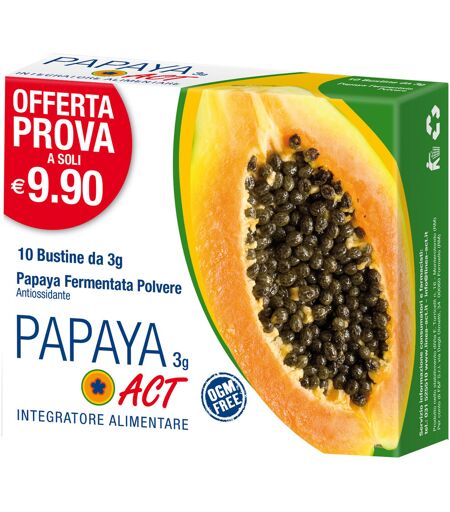Papaya ACT 3g Papaya Fermentata Bustine 30g Caratteristiche: Papaya ACT 3g è un integratore alimentare a base di papaya fermentata, formulato per supportare le difese immunitarie e contrastare lo stress ossidativo. Grazie alla fermentazione, la papaya potenzia le sue proprietà antiossidanti, aiutando a neutralizzare i radicali liberi e a proteggere le cellule dallo stress ossidativo. Ricco di minerali, vitamine e aminoacidi, contribuisce al benessere generale dell'organismo, favorendo energia e vitalità. Il pratico formato in bustine facilita l’assunzione quotidiana, rendendolo ideale per chi cerca un supporto naturale per il sistema immunitario. Integratore a base di papaya fermentata Supporta le difese immunitarie Azione antiossidante contro i radicali liberi Ricco di vitamine, minerali e aminoacidi Favorisce energia e vitalità Pratico formato in bustine da 30g Ideale per un uso quotidiano FAQ Papaya ACT 3g Papaya Fermentata: Come si assume Papaya ACT 3g? Si consiglia di assumere una bustina al giorno, sciolta direttamente in bocca o diluita in un bicchiere d'acqua, preferibilmente lontano dai pasti. Papaya ACT 3g aiuta davvero il sistema immunitario? Sì, grazie alla papaya fermentata ricca di antiossidanti, il prodotto contribuisce a rafforzare le difese immunitarie e a proteggere le cellule dallo stress ossidativo. Può essere assunto da chi ha problemi di digestione? Sì, la papaya fermentata favorisce la digestione e aiuta a ridurre il senso di pesantezza dopo i pasti. Papaya ACT 3g contiene zuccheri aggiunti? No, il prodotto è privo di zuccheri aggiunti ed è adatto anche a chi segue un regime alimentare controllato. È adatto per un uso prolungato? Sì, può essere assunto quotidianamente per un periodo prolungato, contribuendo al benessere generale e alla protezione dallo stress ossidativo. ...