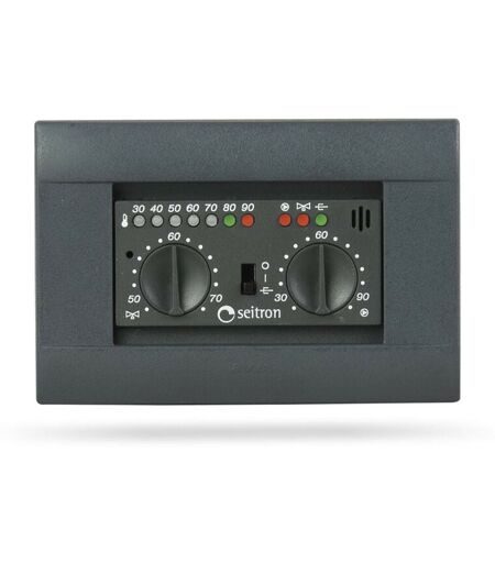 La centralina Fuego 2 nasce per la gestione del termocamino. L��installazione 癡 ad incasso a 3 moduli con alimentazione a 230V. La centralina dispone di due manopole, una per l��impostazione della temperatura dell��acqua di riscaldamento e una per quella sanitaria. La temperatura dell��acqua viene visualizzata tramite una barra al led e in caso di superamento dei 90 簞C, si viene avvisati da un allarme acustico e visivo. La centralina infine 癡 dotata di uscite per comandare una pompa di circolazione, una valvola e un grill. Colore plastica: RAL 7016. Adatta a tutte le placche B-TICINO (Living), AVE (Sistema 45), VIMAR (Idea), (non comprese nella fornitura). Contenuto della confezione: 1x�Centralina per Camini Termocamini e Caldaie Seitron FUEGO2 La centralina Fuego 2 nasce per la gestione del termocamino. L’installazione è ad incasso a 3 moduli con alimentazione a 230V. La centralina dispone di due manopole, una per l’impostazione della temperatura dell’acqua di riscaldamento e una per ...