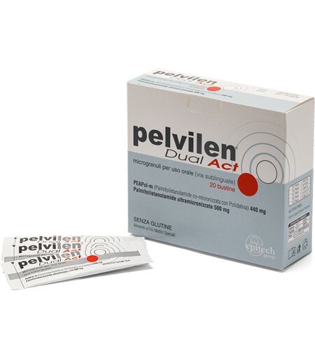 pelvilen Dual Act - Descrizione Alimento a fini medici speciali da utilizzare, sotto controllo medico, per il regime alimentare, in situazioni di neuroinfiammazione non controllata, di pazienti con dolore pelvico cronico. Ingredienti Palmitoiletanolamide ultra - micronizzata (PEA - um dimensione pa… ...