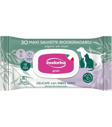 Inodorina Salviette Detergenti Umidificate Biodegradabili per Cani e Gatti Delicate con Ribes Nero 30 pz