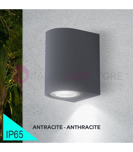 Faretto a parete da interno o esterno con struttura di forma stondata in alluminio verniciato ANTRACITE; schermo in vetro. Ideale per installazione a parete su facciate, porticati, balconi, scalinate. L'applique è fornito di una singola emissione, quindi può proiettare la luce verso l' alto o basso, creando un' illuminazione d'effetto sulla parete. Disponibile in più colori e nella versione con doppia emissione CORDOVA2. ELETTRIFICAZIONE: GU10, 1 X MAX 7W - consigliata lampadina a LED con attacco GU10, non inclusa CLASSE DI PROTEZIONE: IP65 (per esterno). DIMENSIONI: Larghezza 68mm., altezza 160 mm, sporgenza 78 mm ...