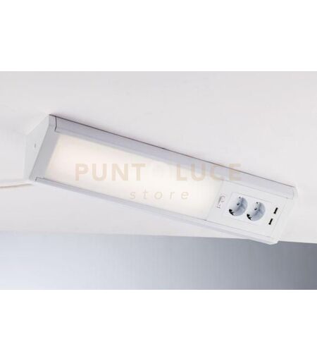 Barra Led Habilis Bianco In Alluminio E Policarbonato 15w 1750lm 4000k 1xschuko 2xusb 12,2x78,5x7,9cm ...