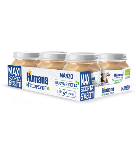 Humana - Descrizione Omogeneizzato con carne di manzo e farina di riso integrale biologici. Prodotto indicato dal 4° mese compiuto salvo diversa indicazione del medico pediatra. Senza glutine, lattosio, sale aggiunto, coloranti e conservanti. Caratteristiche nutrizionali Valori medi per 100 g Energ… ...