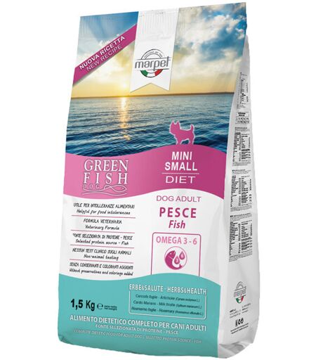 Marpet Greenfish Pesce Cibo Secco Per Cani Adulti Taglia Mini Small Sacco 1,5Kg