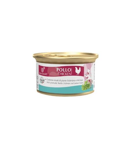 Alimento dietetico completo per gatti adulti. Ingredienti Carni e derivati (pollo 100%), sostanze minerali, destrosio, farina di lupino, olio di semi di girasole. Componenti analitici: Umidità 81%, proteina 6,5%, fibra grezza 0,5%, tenore in materia grassa 4,5%, residuo incenerito 2%. ...