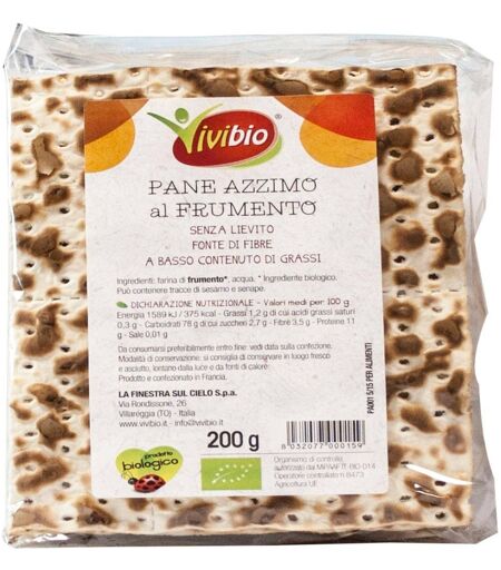 Vivibio Pane Azzimo Al Frumento 200 Grammi. Pane Azzimo Al Frumento È Un Pane A Basso Contenuto Di Grassi Prodotto A Base Di Farina Di Frumento. ...